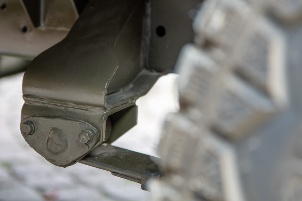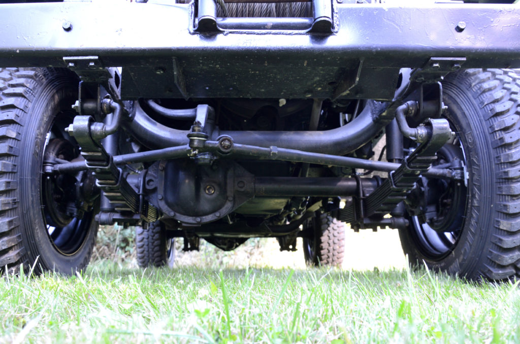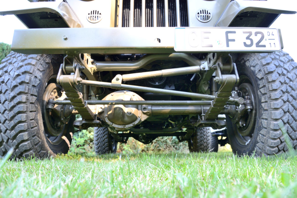 Ab 1975 wurde auch die Achsführung deutlich verändert. Die Federspur der Hinterachse wurde durch außen an den Längsträgern positionierte Konsolen für die Aufnahme der Blattfeder verbreitert. Die dem Willys eigene Federbolzenlagerung über metallische und wartungsbedürftige Büchsen/ Bolzen wurde durch Bolzen in Gummilagern ersetzt.