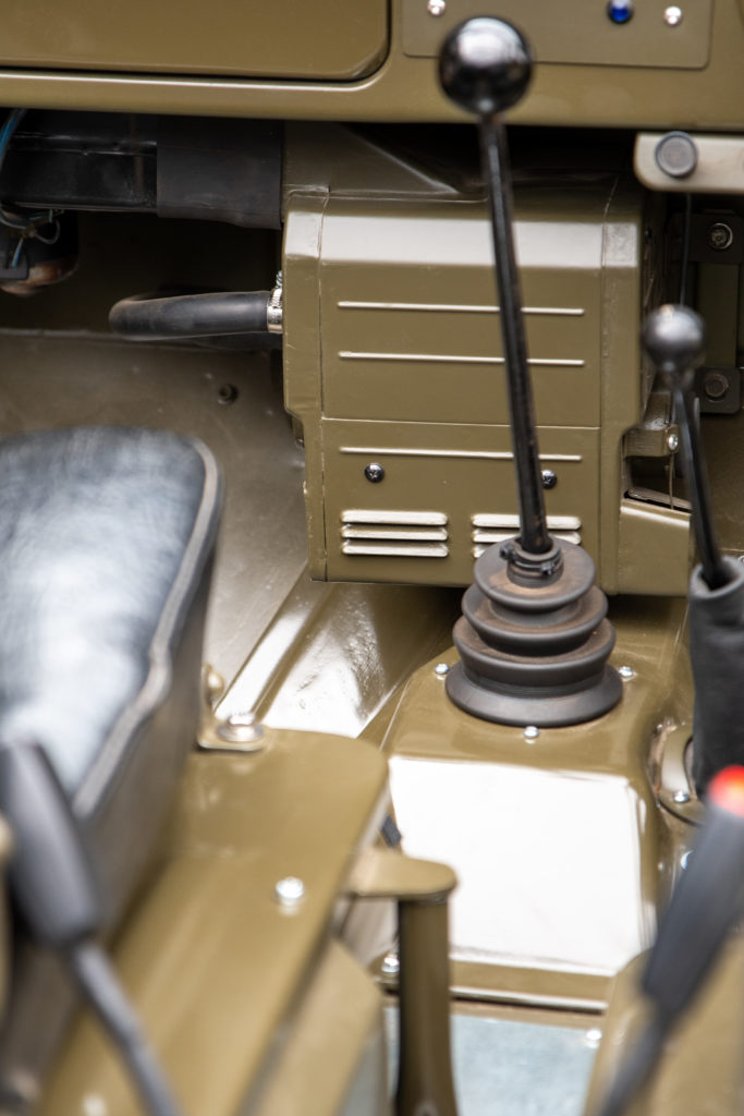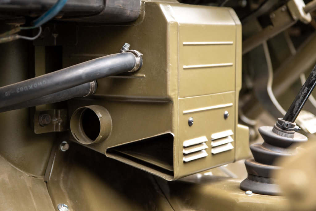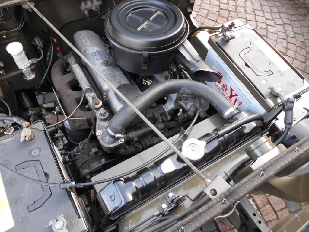 Im Vergleich zum Willys CJ3B fallen die „in Reihe geschalteten“ zwei 12 Volt Batterien ins Auge. Der Trocken-Luftfilter besitzt einen Papiereinsatz.
