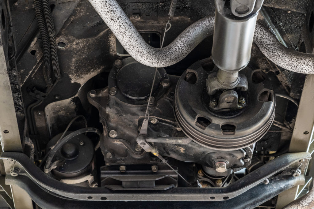Für die Frontseilwinde wurde ein Nebenabtrieb mit Hals an das Verteilergetriebe geflanscht.