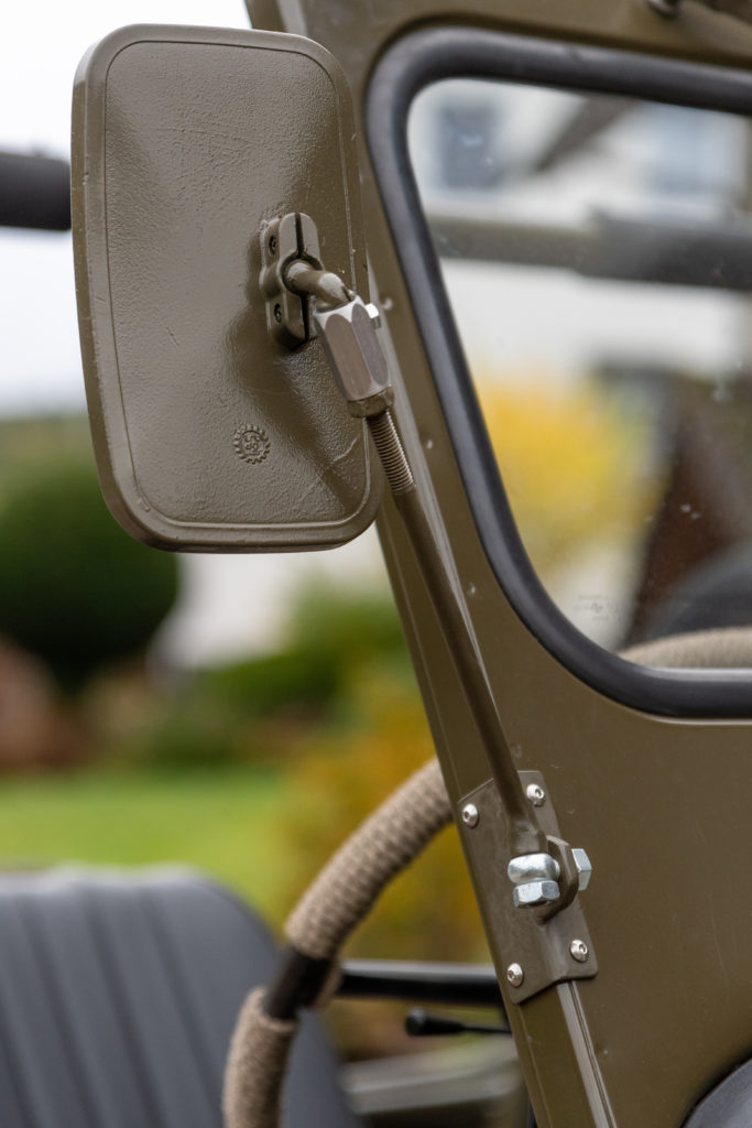 Die Außenspiegel trohnten serienmäßig auf langen Ständern vorn auf dem Kotflügel. Optisch wirkte das nicht gerade smart. Aber auch im Gelände störend.