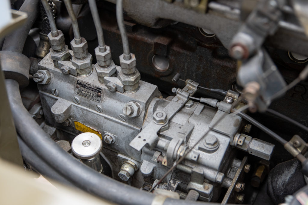 Die Reiheneinspritzpumpe (Nippondenso) erinnert äusserlich von Ihrer Bauart an die bewährten Bosch Aggregate damaliger Zeit und sieht sehr ähnlich aus. Auch die Förderpumpe mit zusätzlicher Handpumpe ist wie bei Bosch seitlich angeflanscht.